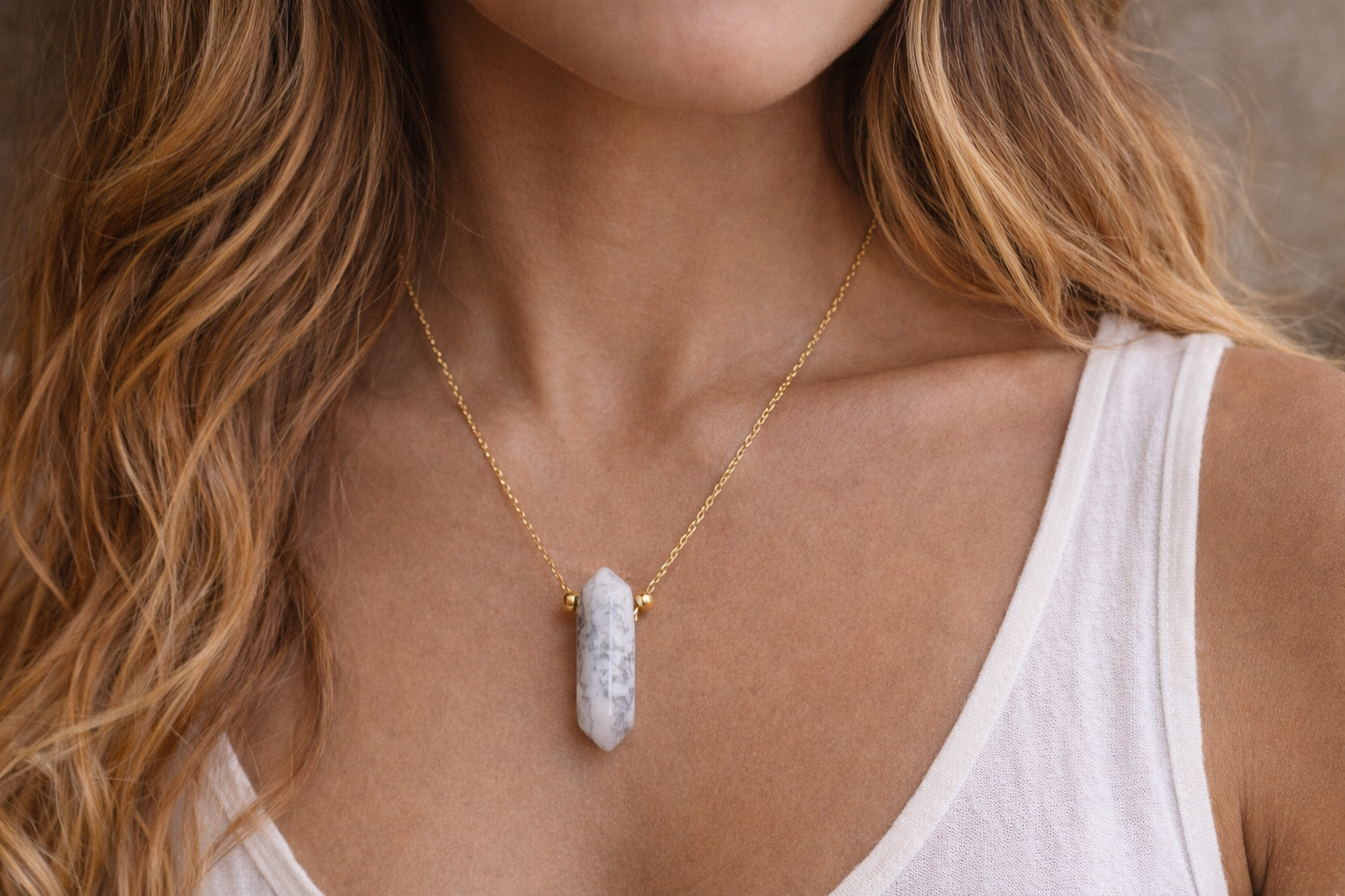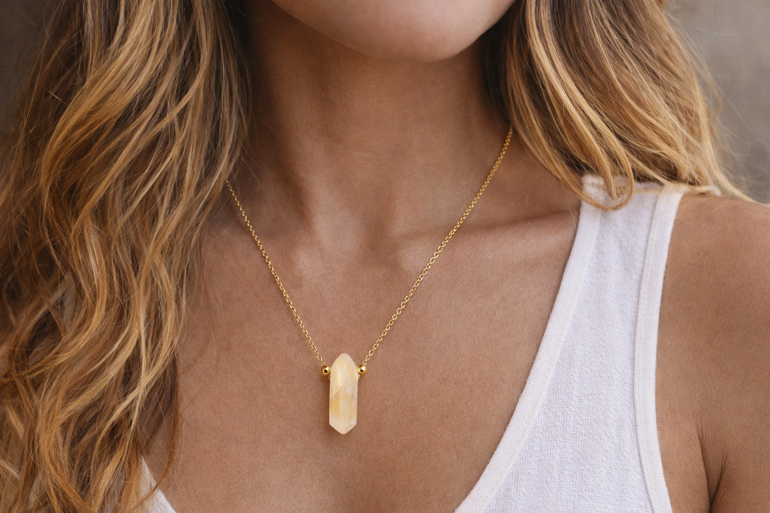 Agate is known for its gentle stabilizing energy, helping to quiet the mind and restore emotional harmony. Often associated with grounding and inner strength, this stone supports clarity, confidence, and a steady flow through life’s transitions. Each piece carries its own natural markings, making every necklace beautifully unique.
